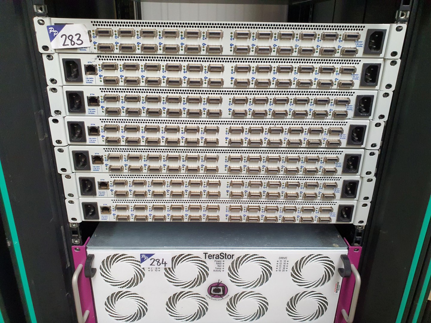 Suitcase TV Terastor disc carrier, 9x Suitcase TV Mediastor servers