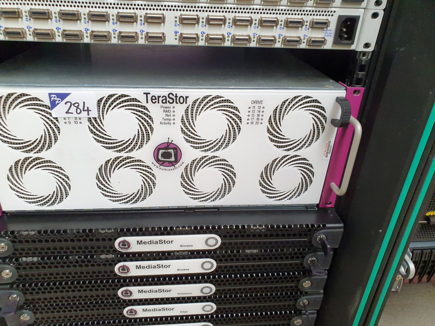 Qty Suitcase TV inc: Mediastor server, processor, Terastor disc carrier frames etc