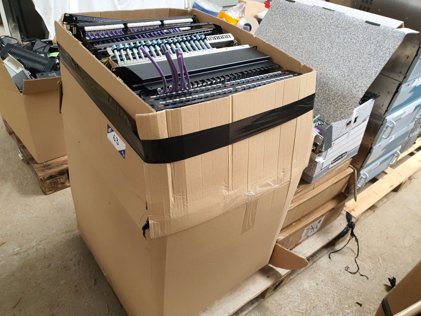 Large Qty various CAT6, audio patch panels etc on pallet