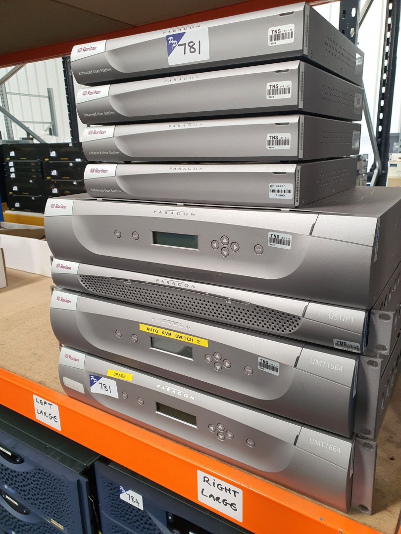 8x various Raritan KVM switches inc: user stations UMT 1664, USTIPI etc