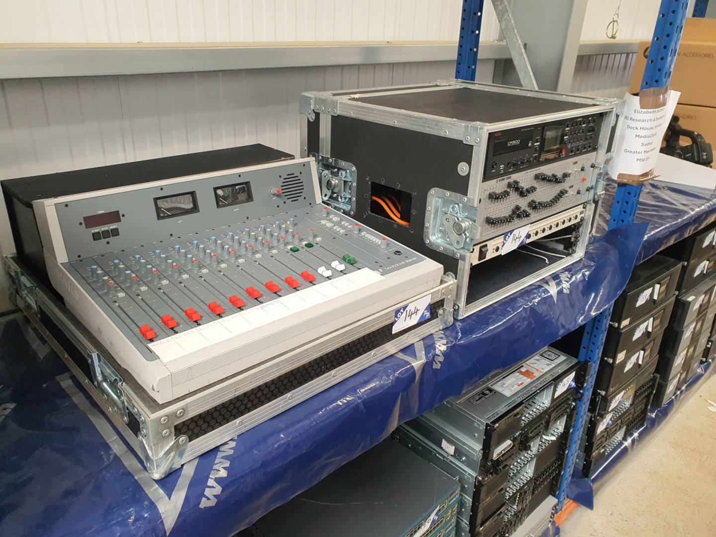 Soundcraft RM105 12 channel mixer with Fostex CR500 CD recorder, Klark Teknik DN360 graphics equaliser, Sound Craft PSU, MDU etc in flight storage cases