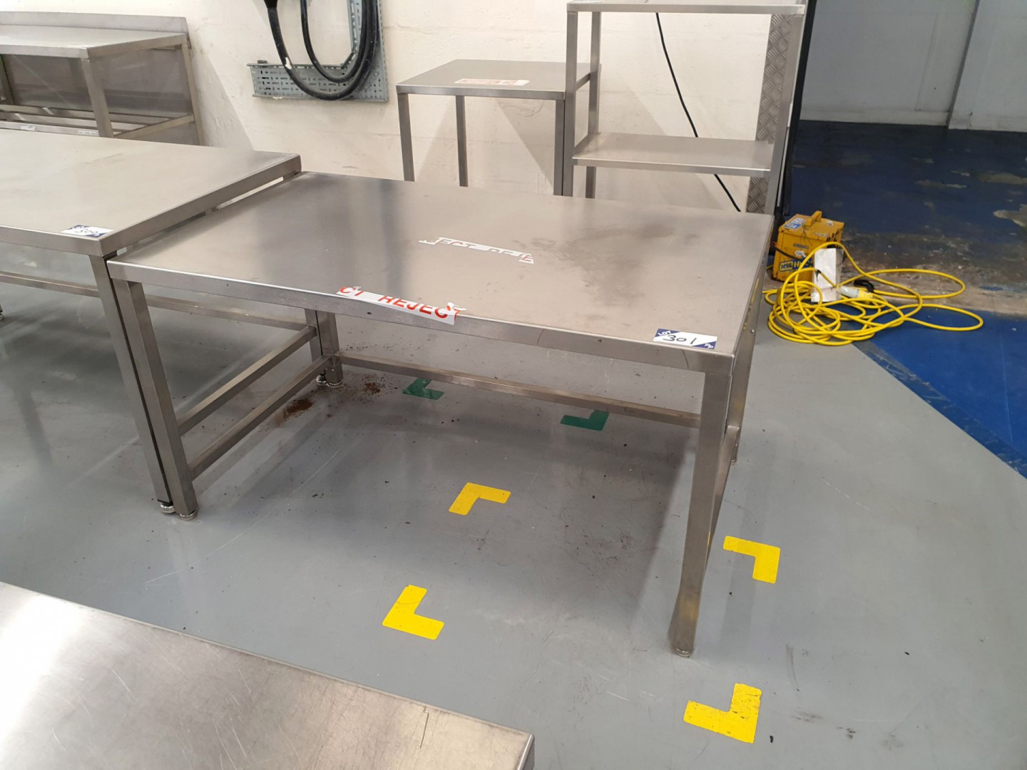 Qty various Teknomek stainless steel tables, trolleys, storage racks