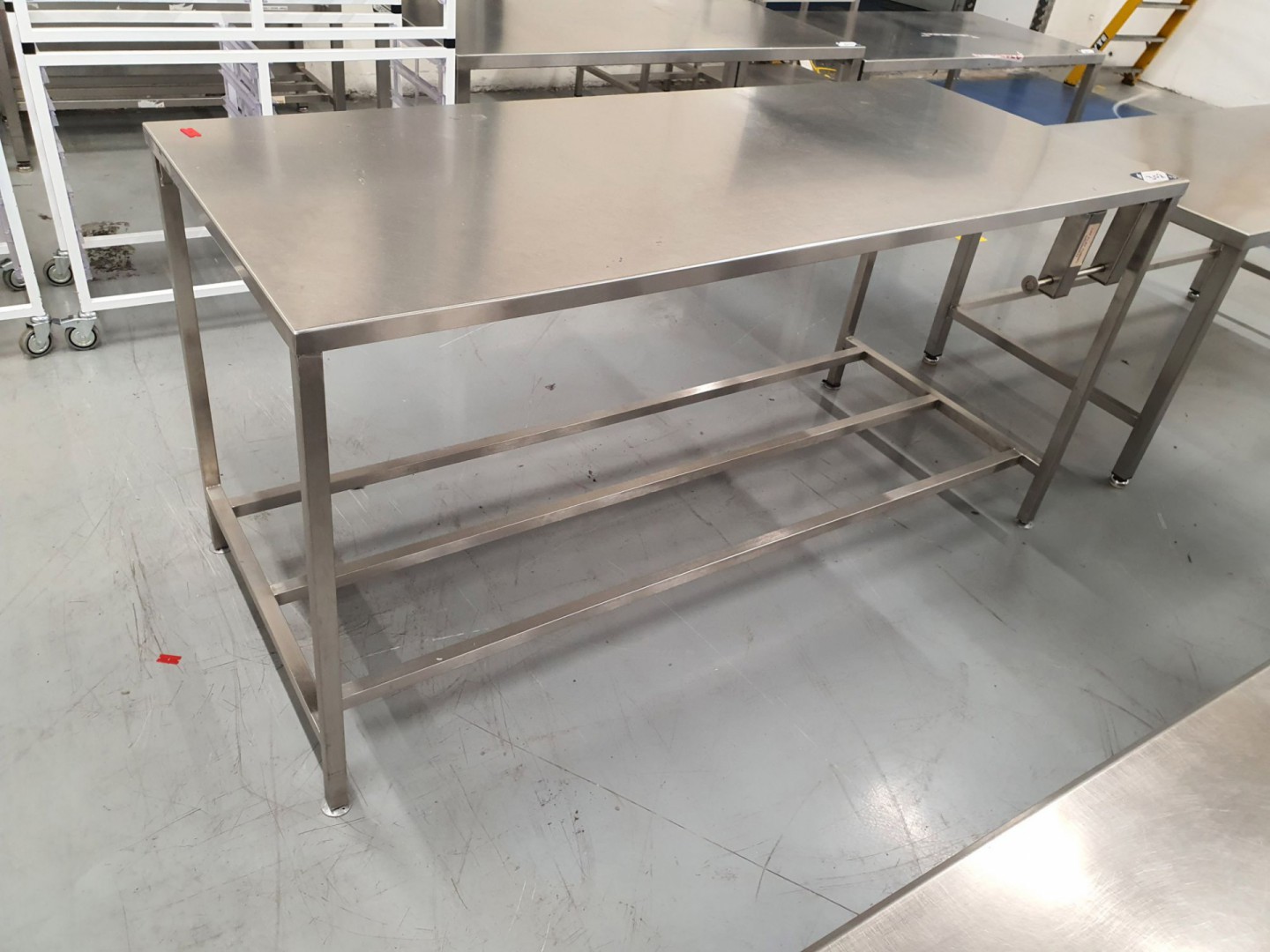 Qty various Teknomek stainless steel tables, trolleys, storage racks