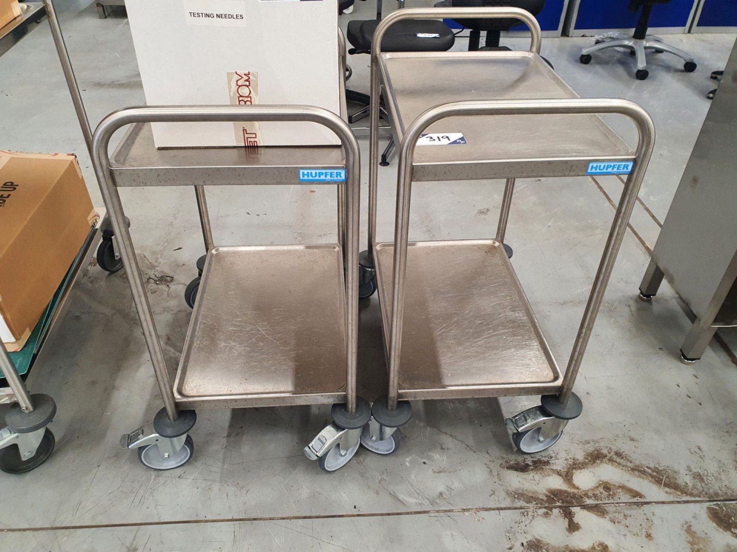 2x Hupfer stainless steel mobile trolleys, 600x400mm
