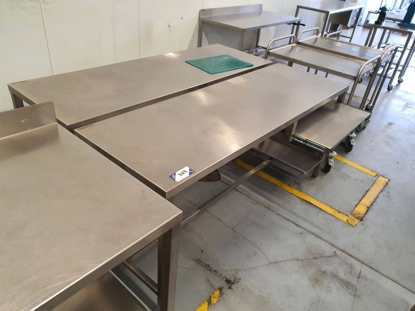 Qty various Teknomek stainless steel tables, trolleys, storage racks