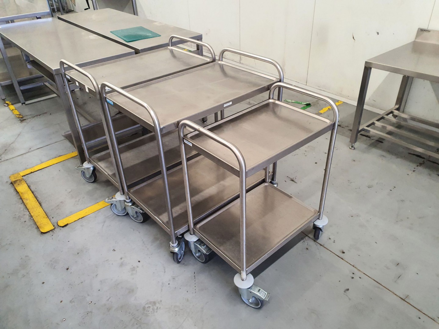 3x various stainless steel mobile trolleys inc: Tupfer, Teknomek, 800x500mm, 400x600mm