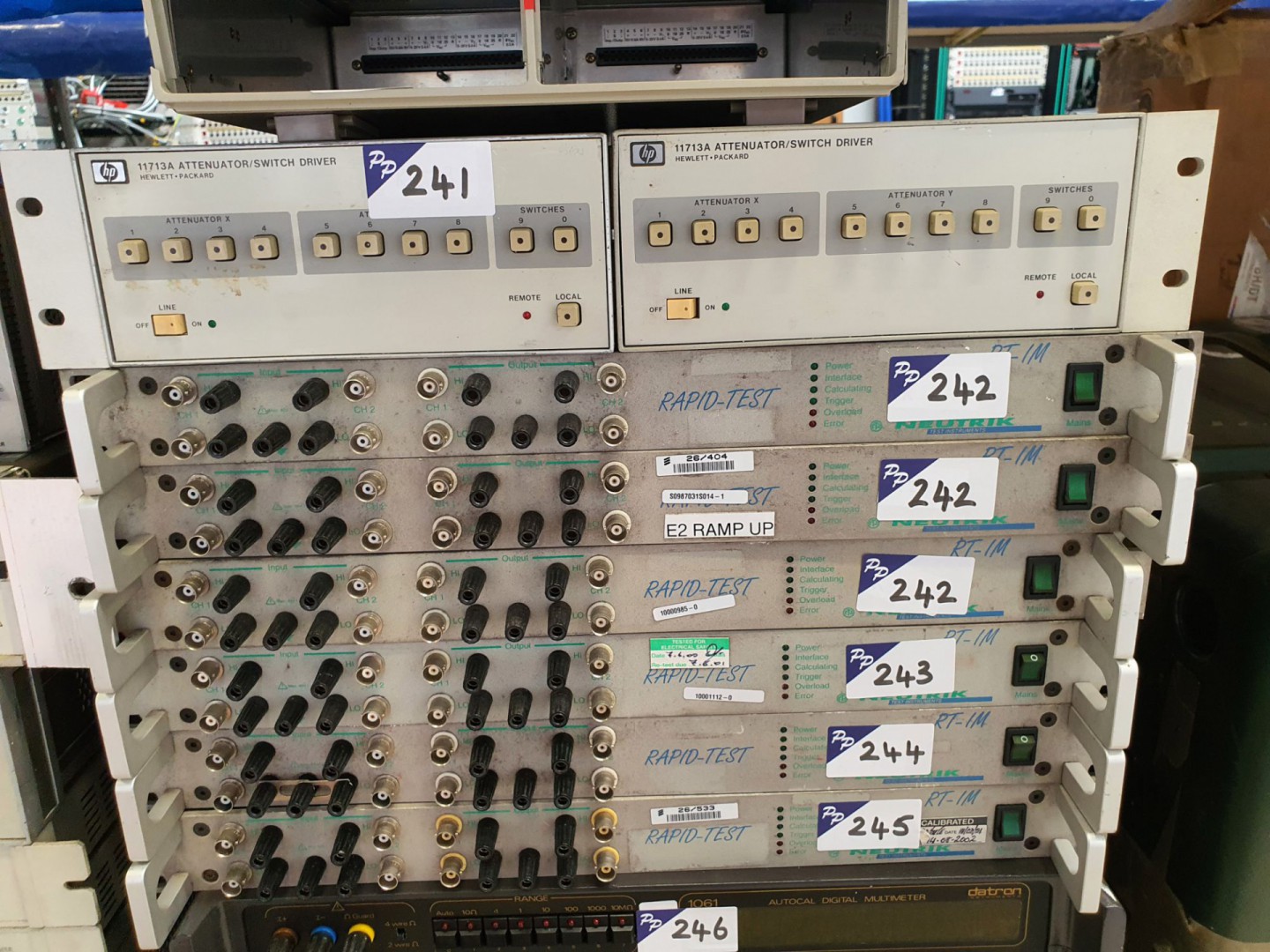 Qty TTI, Wavetek, Megger, Fluke, UTL, HP, Narda, Bruel & Kjaer, Agilent, Racal Dana, Tektronix, Farnell, Thandar, Bird, Muirhead, Neutrik, Datron, Plustek, Bradley Electronics, Philips, Feedback, Calan, Wayne Kerr, Anritsu, Hitatachi, Rohde & Schwarz, Marconi, Avo, Weir, RS, Beamer etc programmable PSU’s, pulse / function generators, amplifiers, sweep generators, RF terminations, multimeters, network analysers, reflectometers, frequency analyser, data acquisition control units, attenuators, pattern generators, power meters, modulation meter, frequency counters, voltmeters, transceiver interface, resistance boxes, electronic loads, signal generators, rapid test units, signal generation platform, AC calibration source, function generator, oscilloscopes, RMS voltmeters, transmission analysers, microwave counters, RF step attenuator, mainframes, vector signal generator, digital communications analyser, TV sat converters, UPS, isolating transformers, wireless communication test set, radio communication test set, spectrum analyser, transistor bias supply, Avo meters, PSU’s modulation sections, waveform calculators, eprom eraser, frequency oscillator, conductivity meter, mobile radio test set, vintage mechanical calculators etc etc.