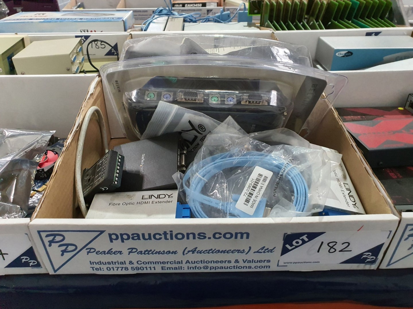 2x Lindy fibre optic extenders, VGA to HDMI converter, Belkin KVM switch etc