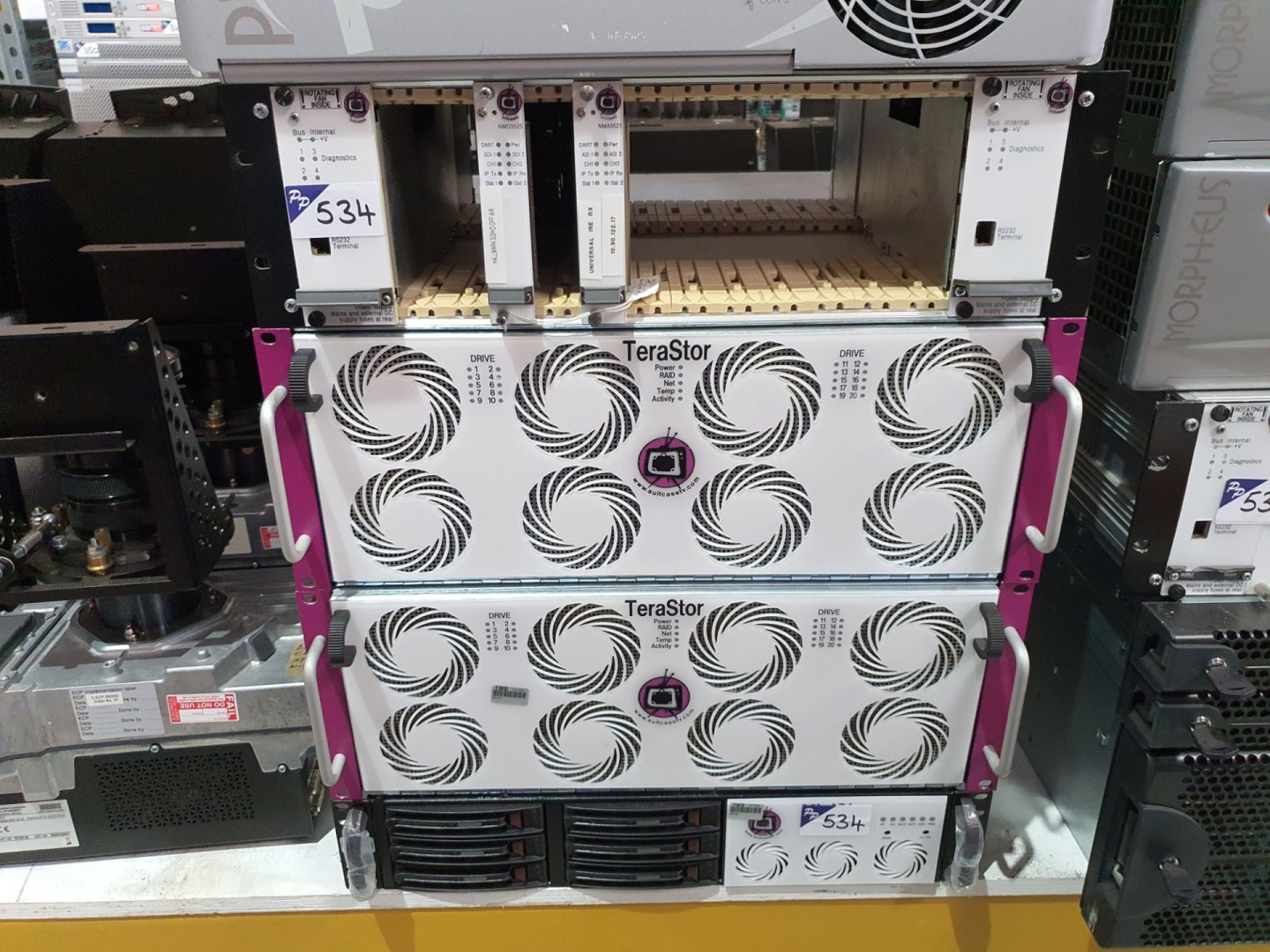 Suitcase TV frame with cards inc: NMD3525, 3521, & 2x Disc Carrier frames, server etc