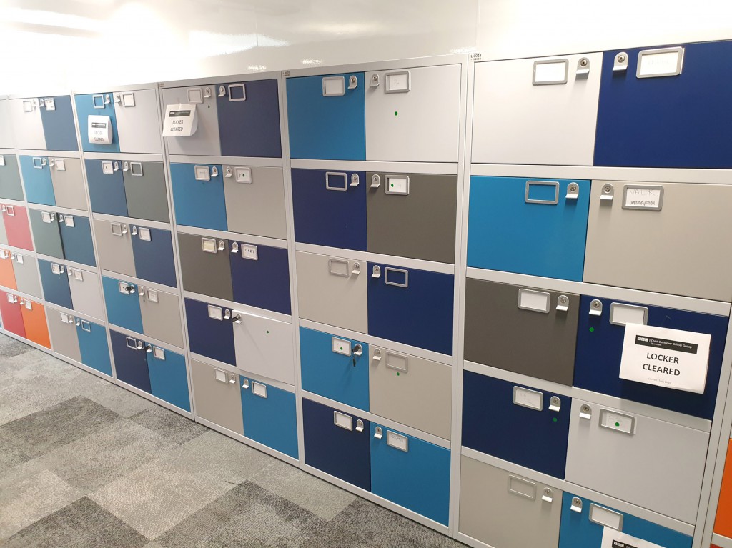Qty Bisley various colour 10 compartment key type lockers, 800x470x1800mm approx dimensions (2017)