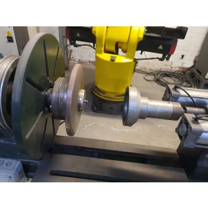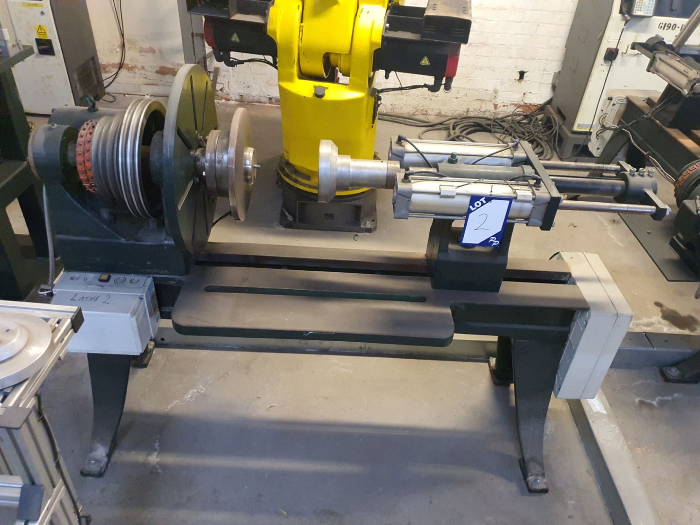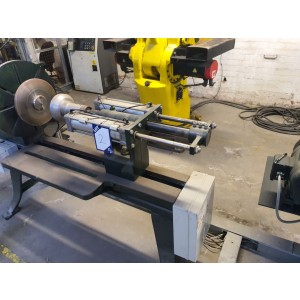 EG Wilson belt driven / pneumatic spinning lathe, 500mm dia face plate, 250mm CH x 400mm b.c.