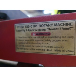 180-0101 bench mounted rotary machine, 0.8mm / 22 gauge capacity, 177mm throat