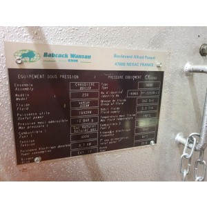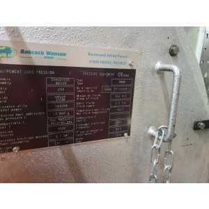 Babcock Wanson Chaudette type NBWB250 gas fired steam boiler, 12 Barg max pressure, 1692kW output, 192degC max fluid temperature, Babcock Wanson touch screen with sundry equipment (2016)