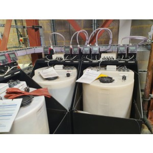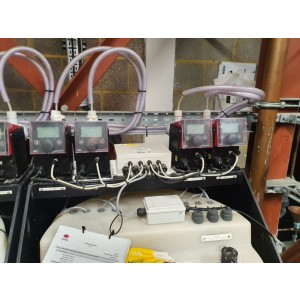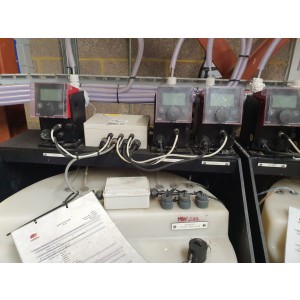 Water softening plant inc: 3x tanks – caustic thermo-tech, phosphate thermo-tech, sulphate thermo tech, each tank with 3x Grundfoss DDC6-10A digital dosing pumps (2016)