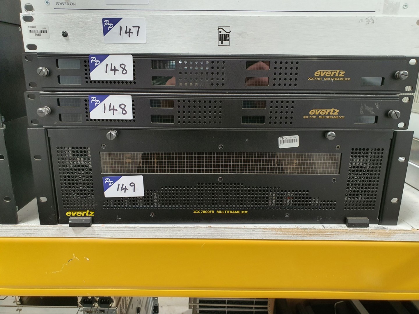 Evertz 7800FR multiframe inc: 7700FC, 7700ADA7-EQ, 4x 7700DA7, 7700R2X2-HES cards