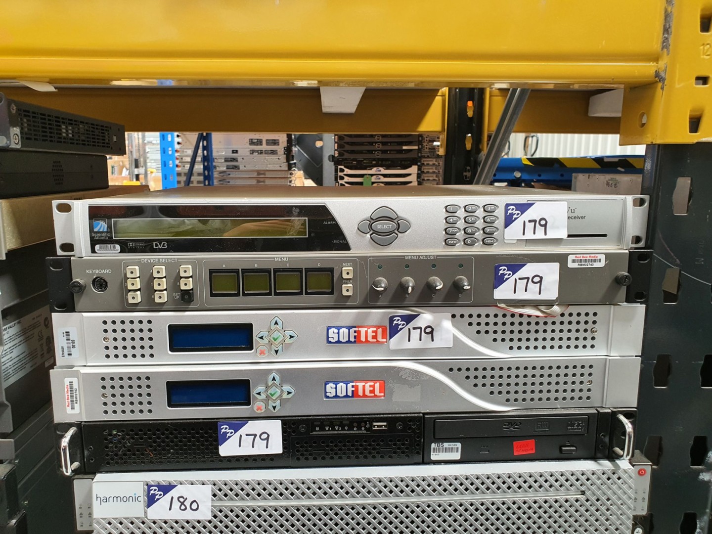 Scientific Atlantic D9850 Power Vu program receiver, 2x Softel Vflex SD teletext / data server, similar rack type server, Eyeheight flexi panel